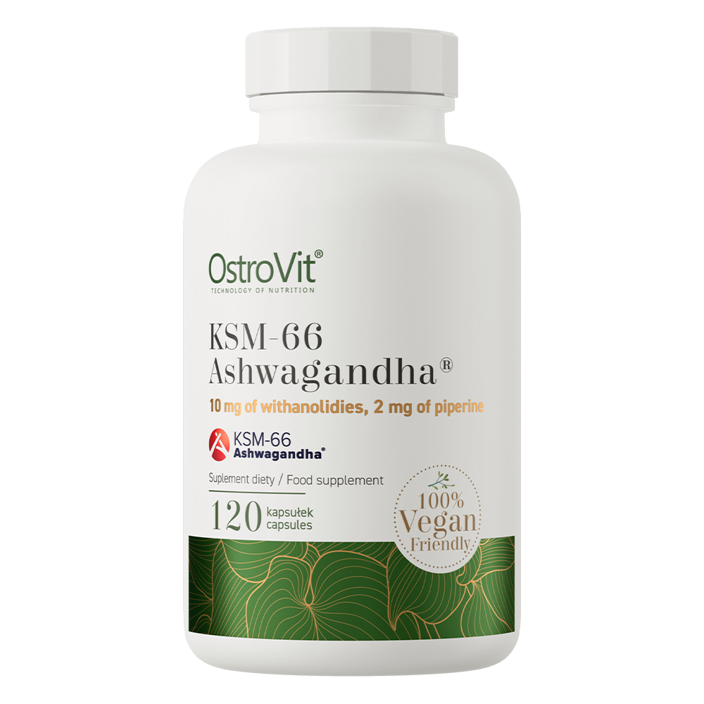 | Sestava | Izvleček korenine ašvagande (Withania somnifera L. Dunal) – KSM-66 Ashwagandha®, standardiziran na 5 % withanolidov; inulin; sredstvo za povečanje prostornine: hidroksipropilmetil celuloza; izvleček plodov črnega popra (Piper nigrum L.), ki vsebuje 95 % piperina. 1 kapsula vsebuje 200 mg izvlečka korenine ashwagandha KSM-66, kar zagotovi 10 mg vitanolidov in 2,1 mg črnega popra, kar zagotovi 2 mg piperina. Izdelek lahko vsebuje mleko (vključno z laktozo), sojo, pšenico, jajca, zeleno, gorčico, rake. |